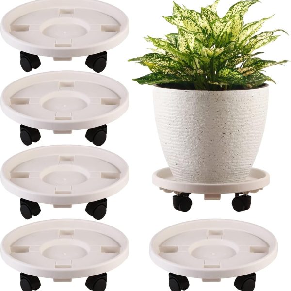 5 Packs Large Plant Caddy with Wheels 13″ Rolling Wheeled Plant Stands Heavy-duty Plastic Flower Pot Roller Base Movers Indoor Outdoor Planter Dolly with Casters Trolley, White