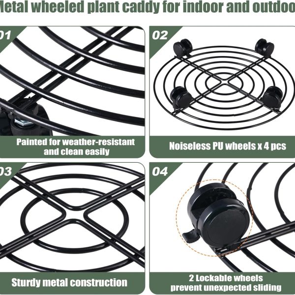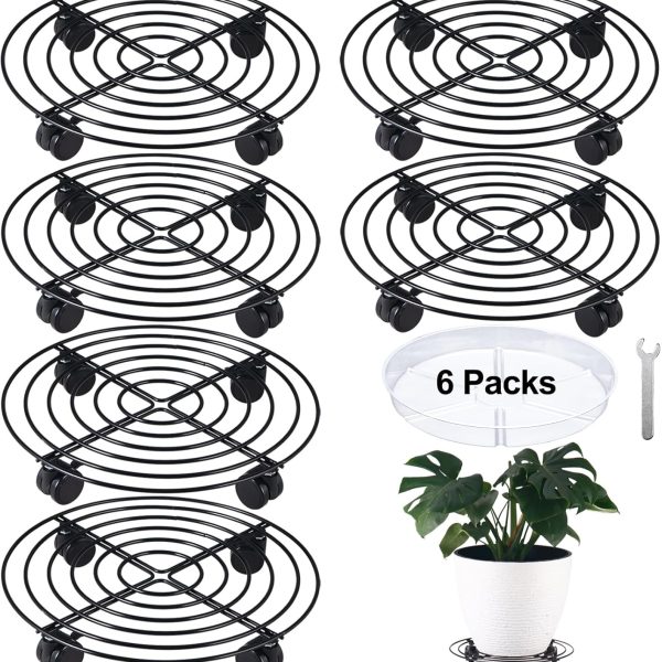 6 Packs Metal Plant Caddy with Wheels 12” Rolling Plant Stands Heavy-duty Wrought Iron Plant Roller Base Pot Movers Plant Saucer on Wheels Indoor Outdoor Plant Dolly with Casters Planter Tray Coaster