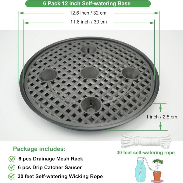 6 Pack 12 inch Self Watering Base for Fabric Grow Bag, Self-watering Plastic Elevated Plant Saucer Stand, Automatic Watering Tray for Non-woven Planter Flower Pot Growth Tent Greenhouse Indoor Outdoor